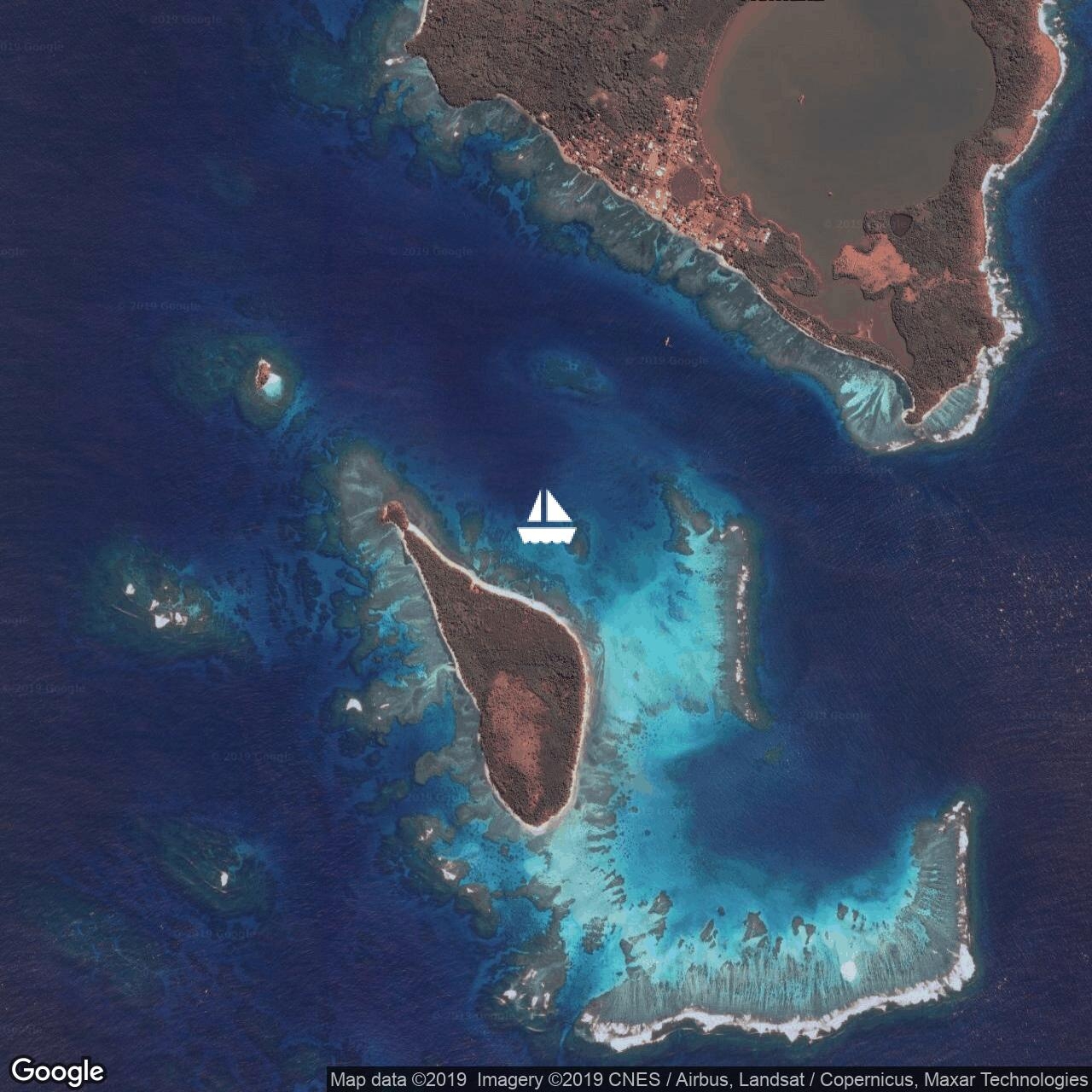 Tuck in behind the reef in 9m on sand for best protection from the sea.