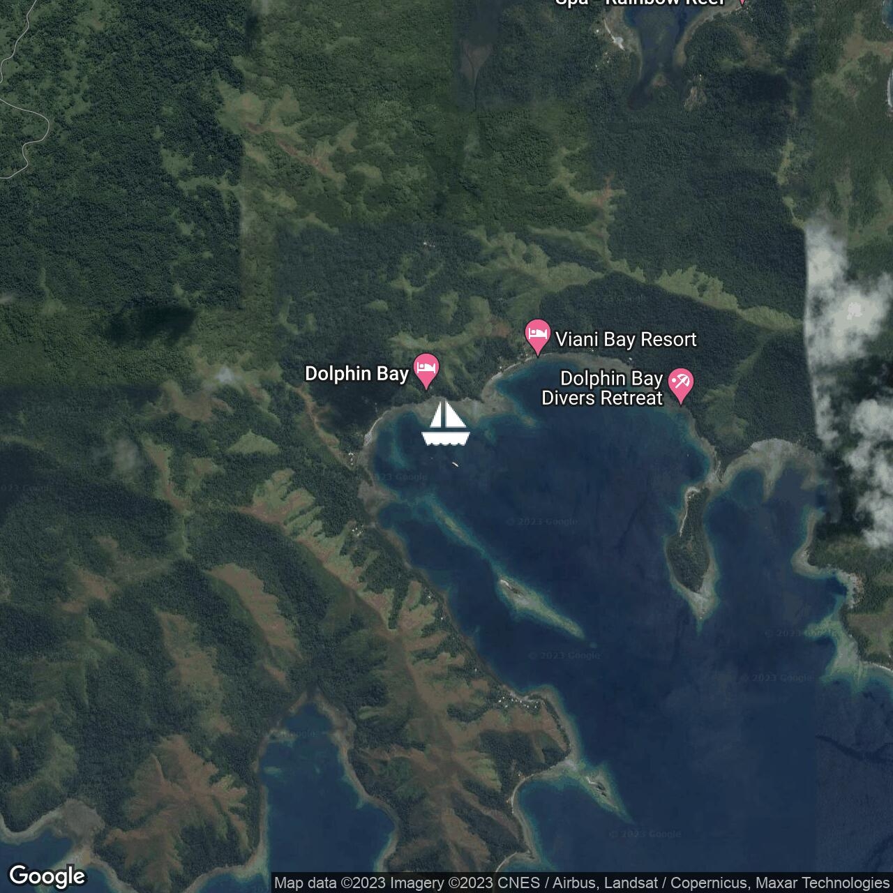 Anchored off Cousteau Dive Resort. Heading for Viani Bay tomorrow.
