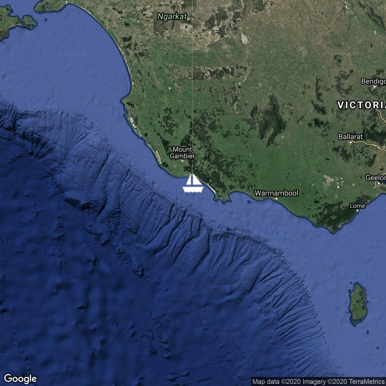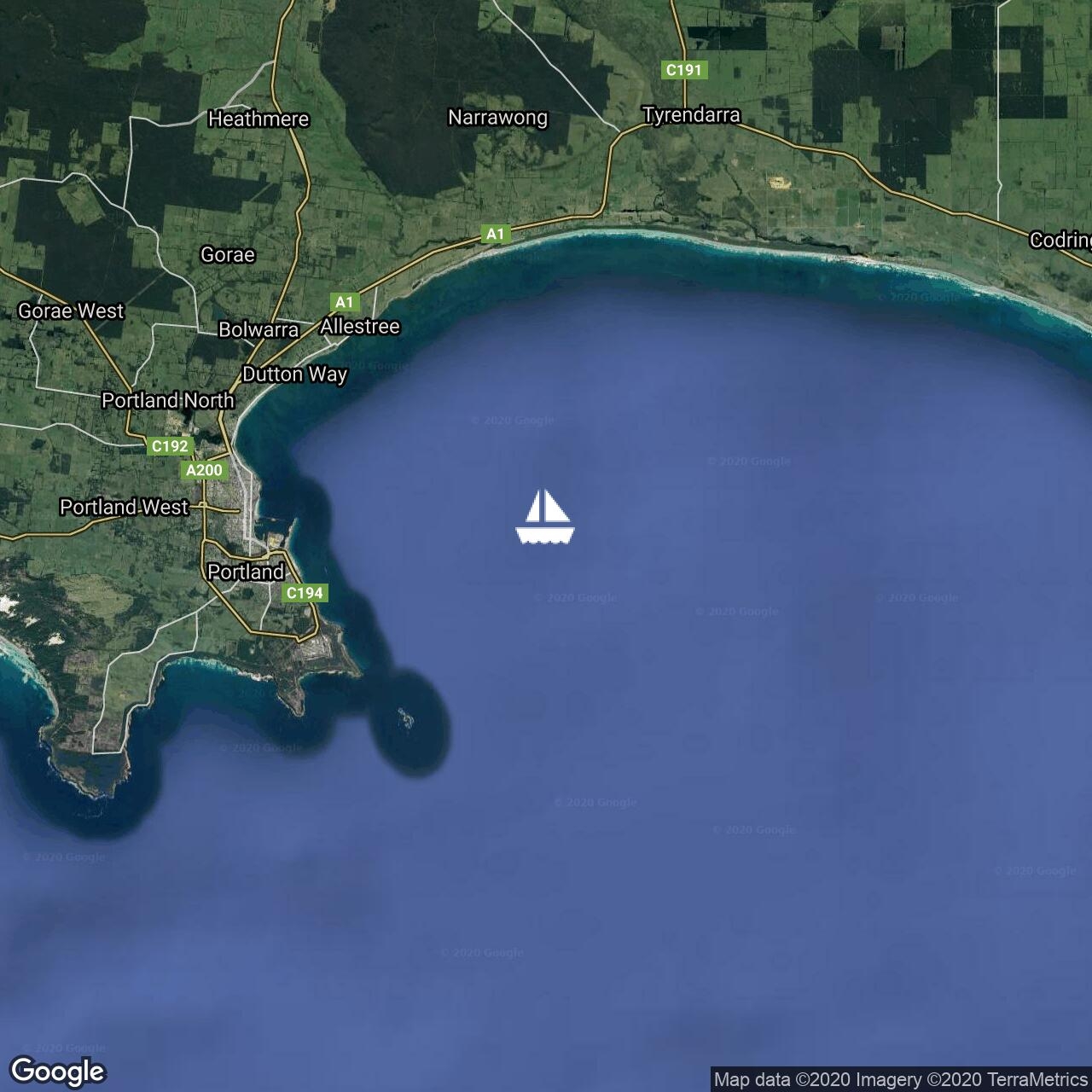 Just passing Apollo Bay (& big ship), all good so far.