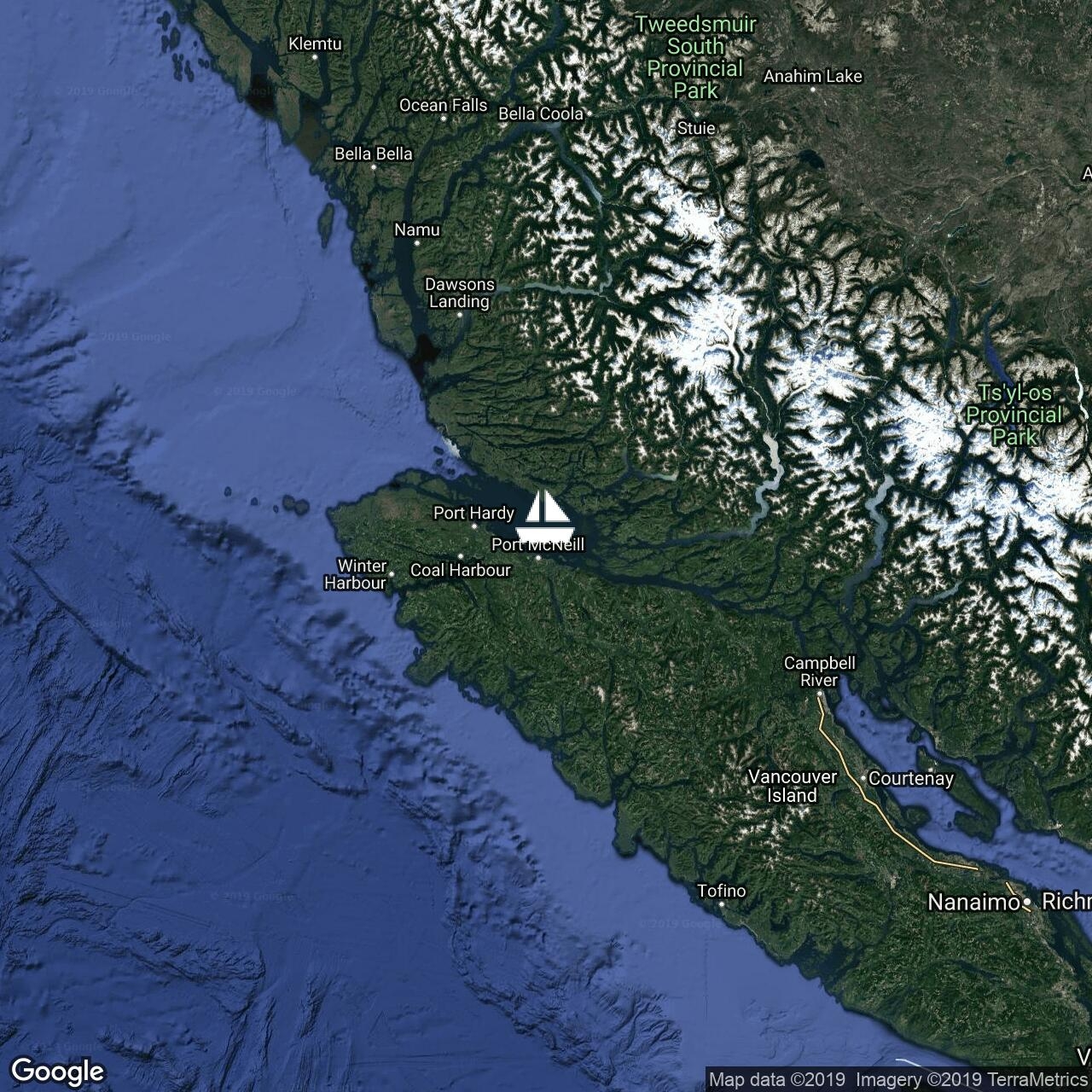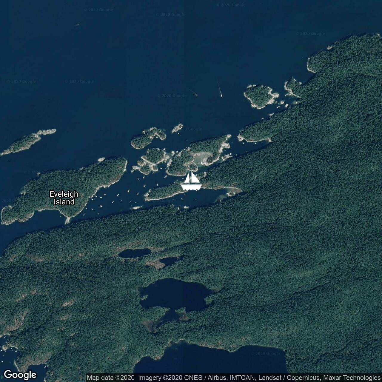 Fluenta and crew are across Queen Charlotte Sound and anchored off Sointula near Vancouver Island after an overnight sail from Haida Gwaii.