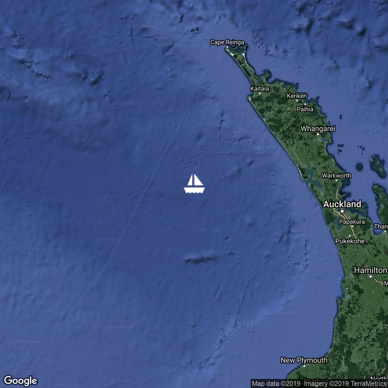 All well on board. Found wind! Turned motor off, yay!! 44 miles to Cape Reanga(?)
