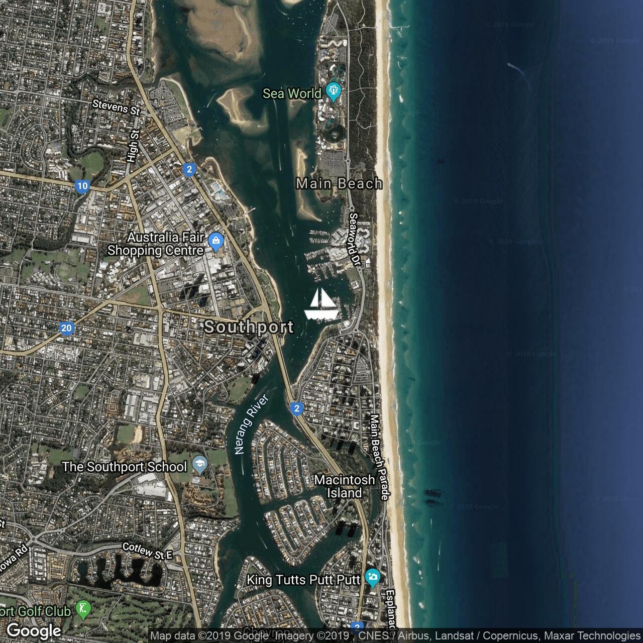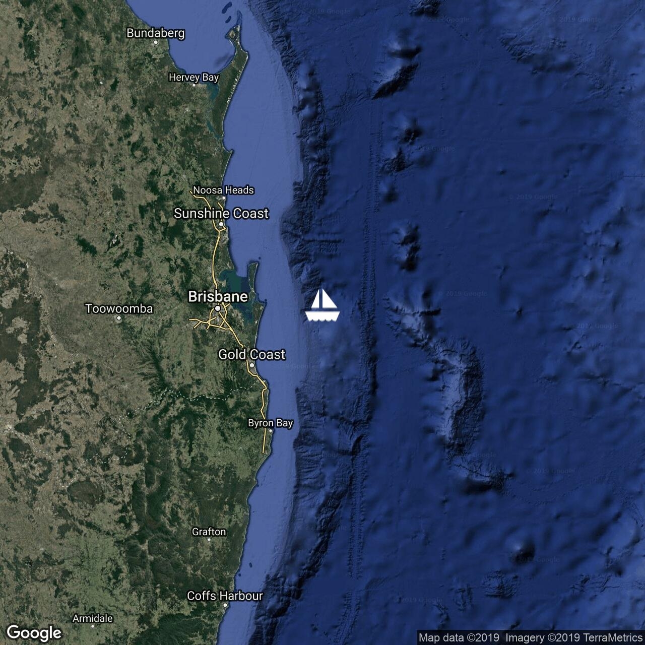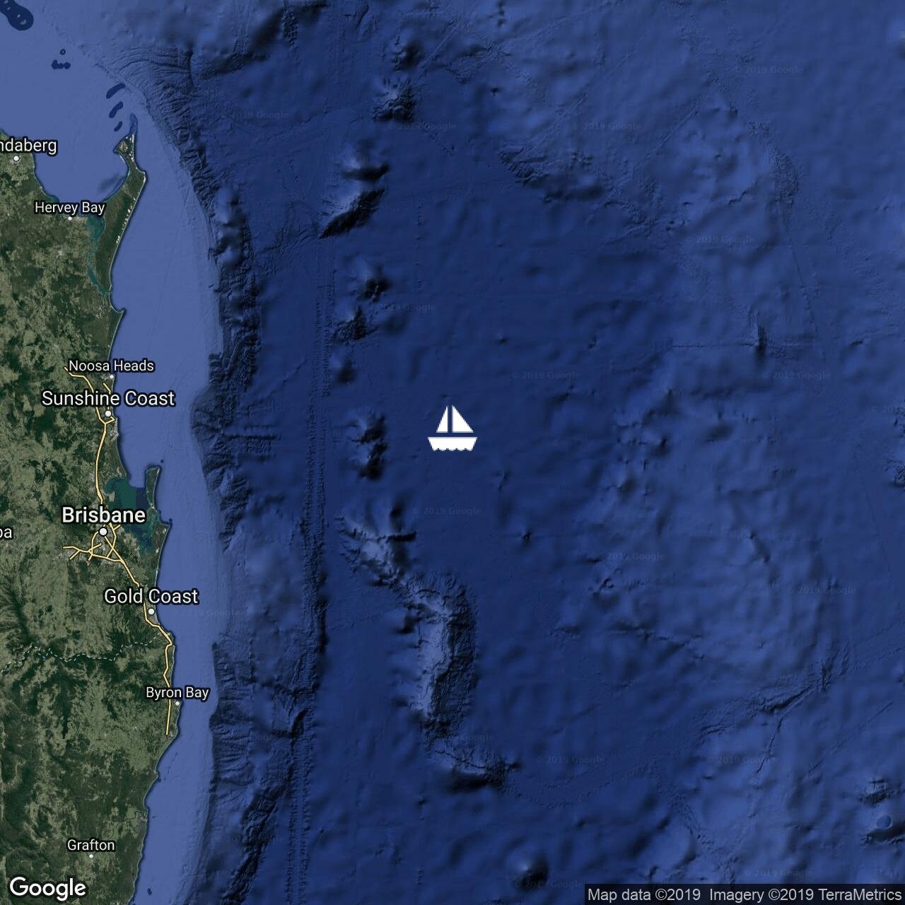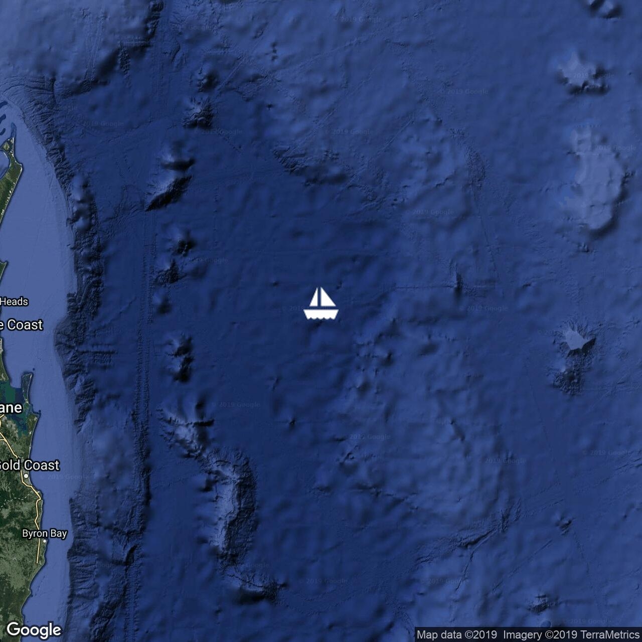 Departing New Cal for Southport after a nice last surf. Moderate Southerly breeze filling in, fetching along nicely with full sails.