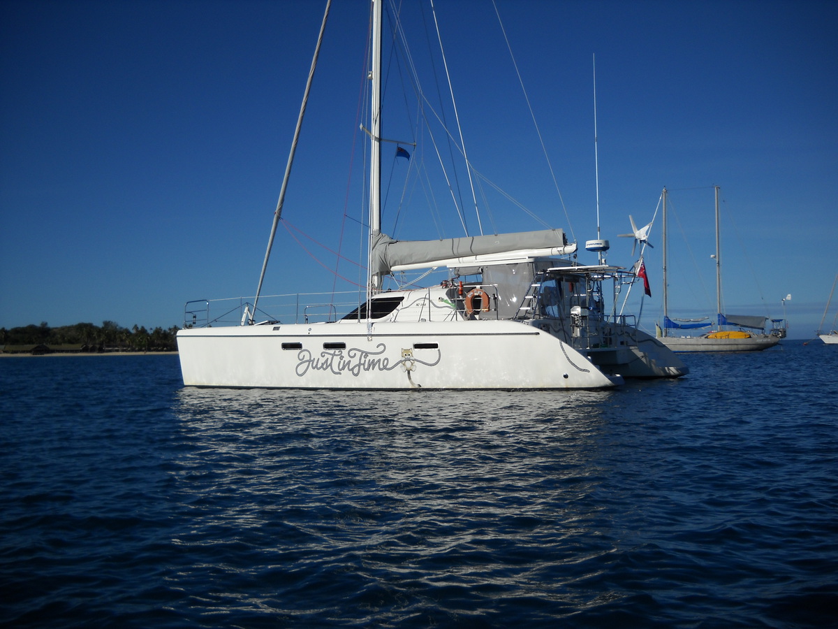 Follow'Just in Time' is a catamaran designed by Alan Wright and Angelo Lavranos. She was built in Auckland and launched in 2005, by her owners Jock and Leanne Tucker. From 2005 til 2009 a lot of work was done finishing and getting her up to sailing standard. In 2009 we undertook our first offshore trip to Tonga, Fiji, Vanuatu, New Caledonia and back to NZ. This trip provided a snapshot of the Pacific and gave us lots of insight as to what we wanted to return to do. 'Just in Time' has stood up to the ocean crossings well and we have every faith in her to get us wherever we need or want to go. Fiji has been our favourite and have cruised here each year since then. The people, diving and cruising here is fantastic.