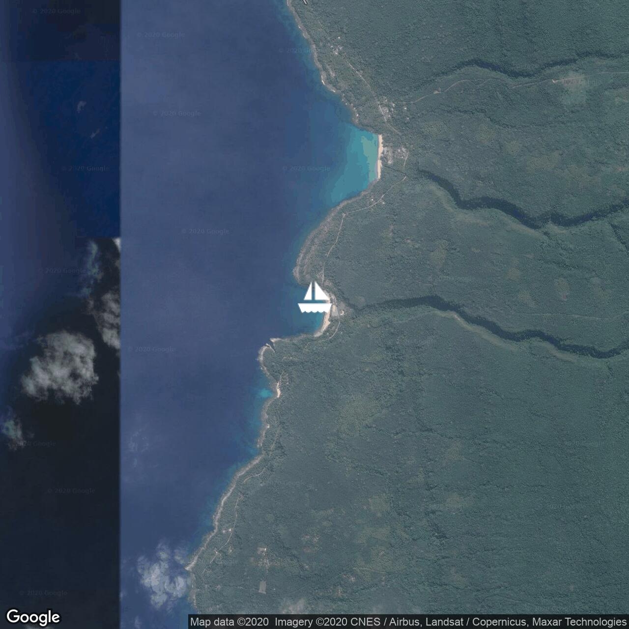 We have moved around to Gaspard Bay which offers better protection from the strong south easterly (19 - 21 kts) winds that are blowing in open water.