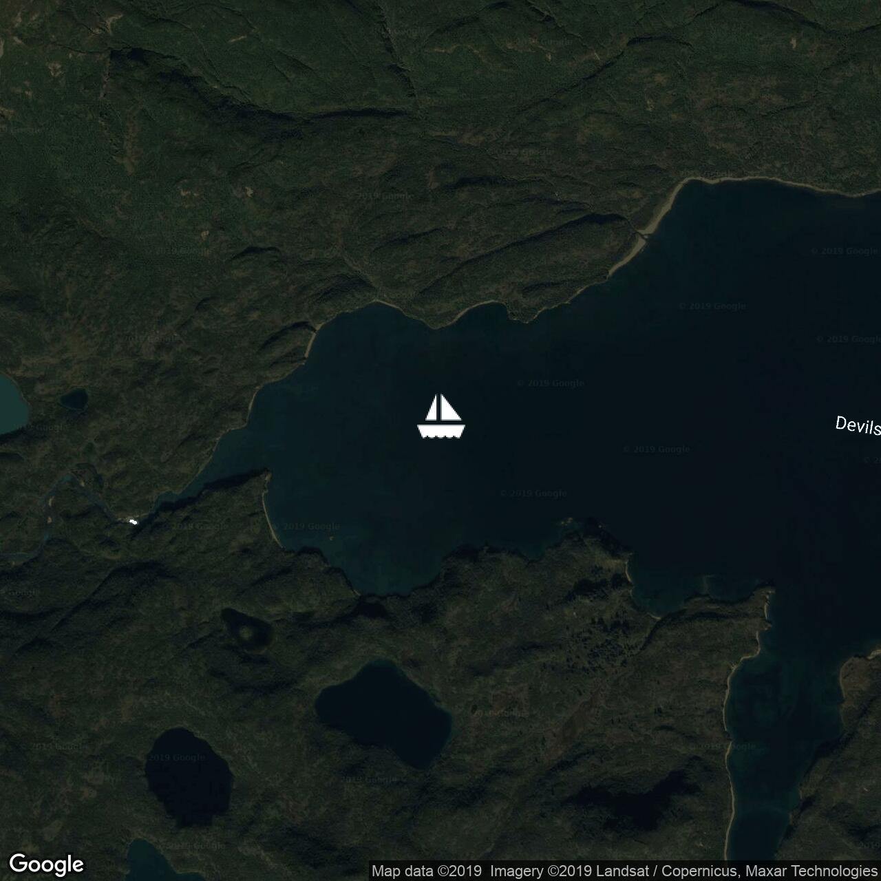 Me 02/10/2019. Calme plat pour longer les montagnes enneigées et ancrer à Devils cove