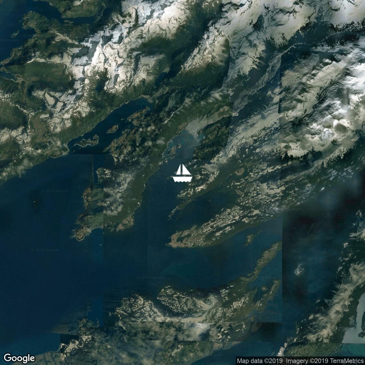 S 05/10/2019. Bien secoués par les williwaws hier à Bluefox, nous voici 8 milles plus loin à Redfox Bay en espérant être mieux abrités pour le coup de vent de demain.
