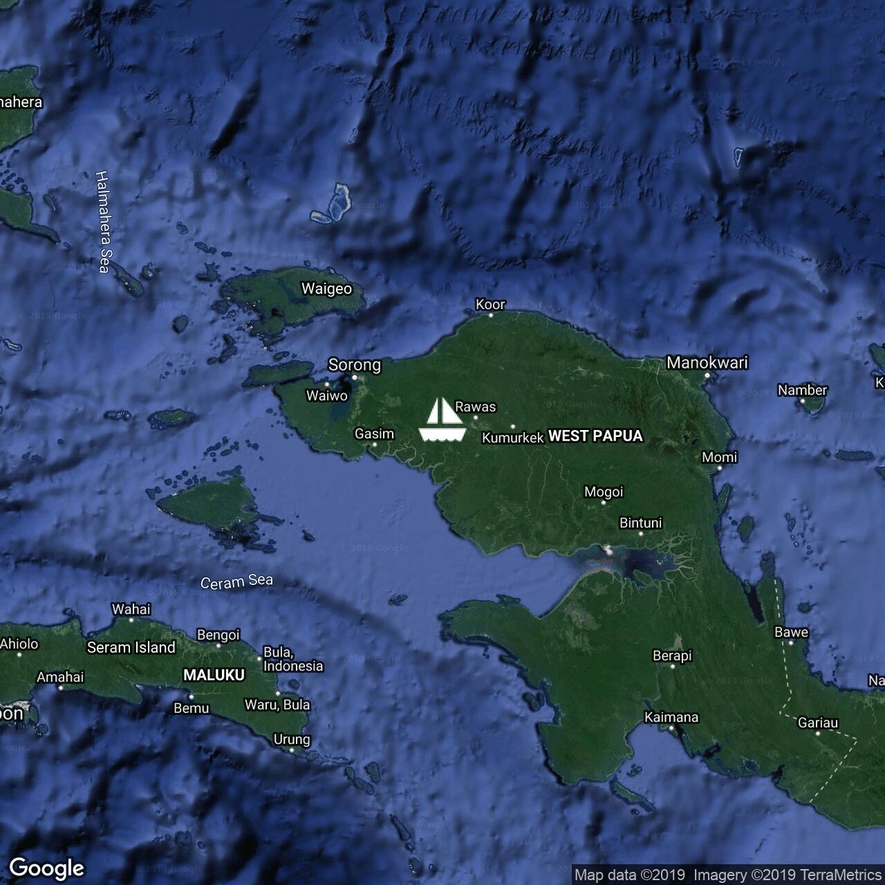 Left Padaido Islands at 0630 this morning. Position as of 1245. Assisting current of 3 knots. 7nm S of Biak heading W under full sail.