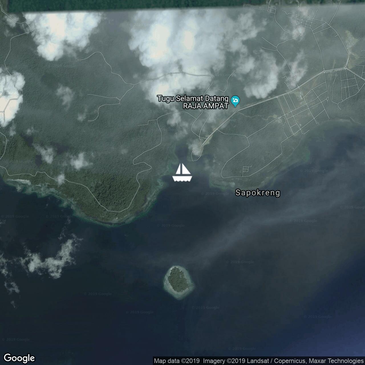 Paws has left Sorong and heading south. Completed Selat Sele passage today catching the tide, and anchored behind Pulau Lugo in the exit to await morning for navigating nearby shoals.
