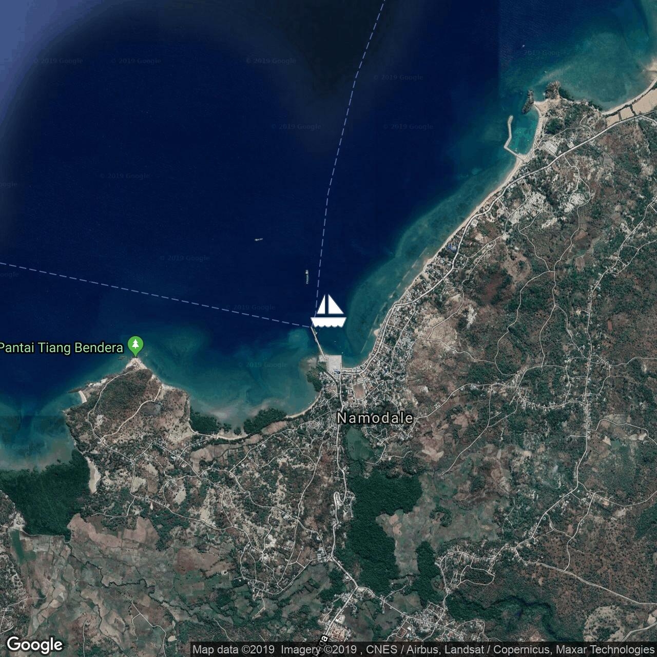Sailed from Semau anchorage W of Kupang to Ba?a Harbour on N coast Rote today. Winds dropped off in the arvo. Anchored close to town E of the ferry pier