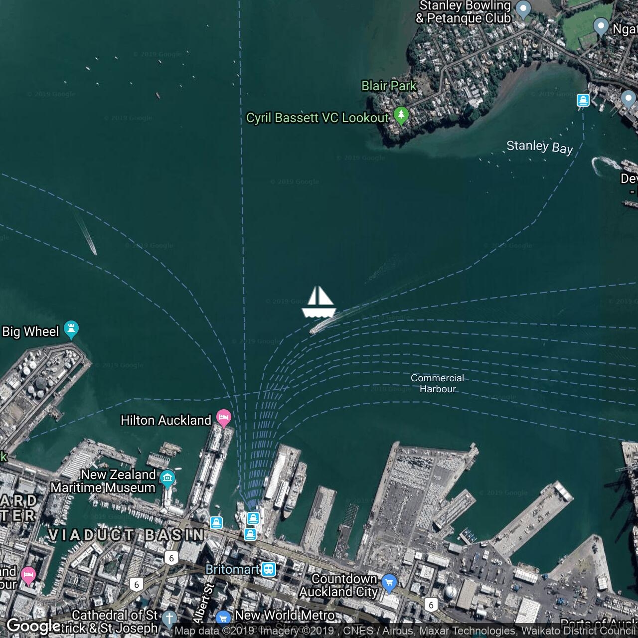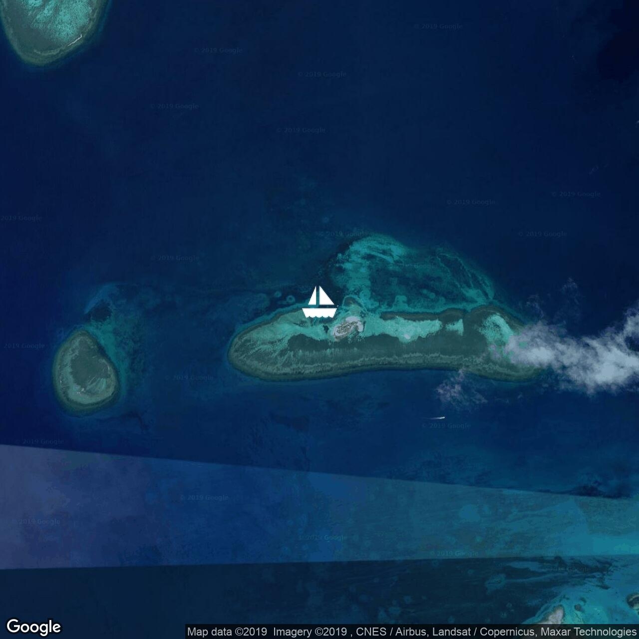 Passing Nine Pin and heading for the customs dock at Opa