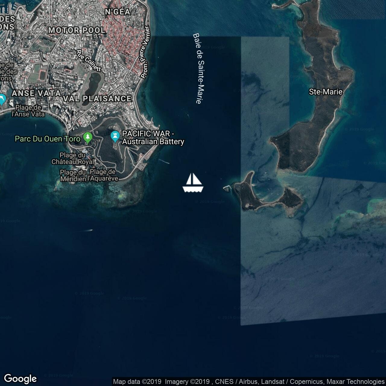 Picked up a free park mooring in Isle Casy after scuba diving on the Prony Needle