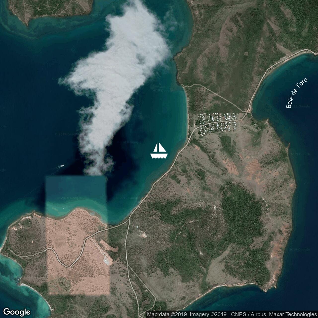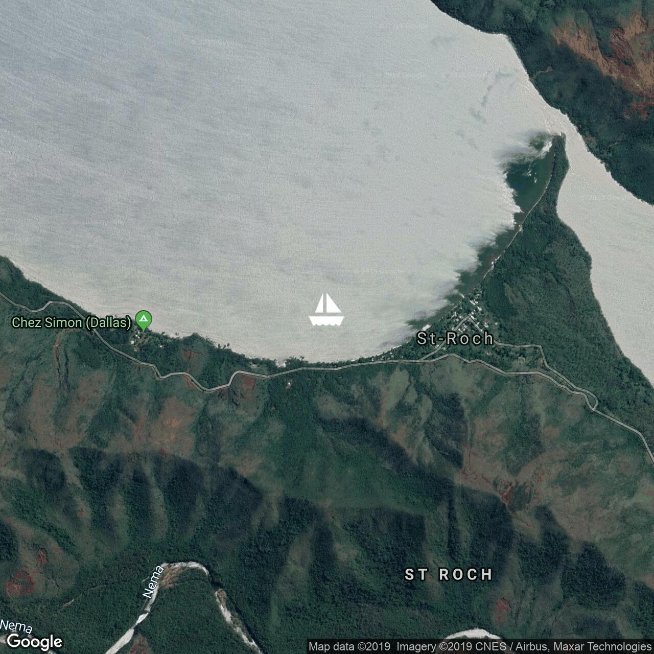 Hiding out from the reinforced trade winds in Baie Maa. Outside blowing 25-30kn. In here, behind a big hill, about 5kn.