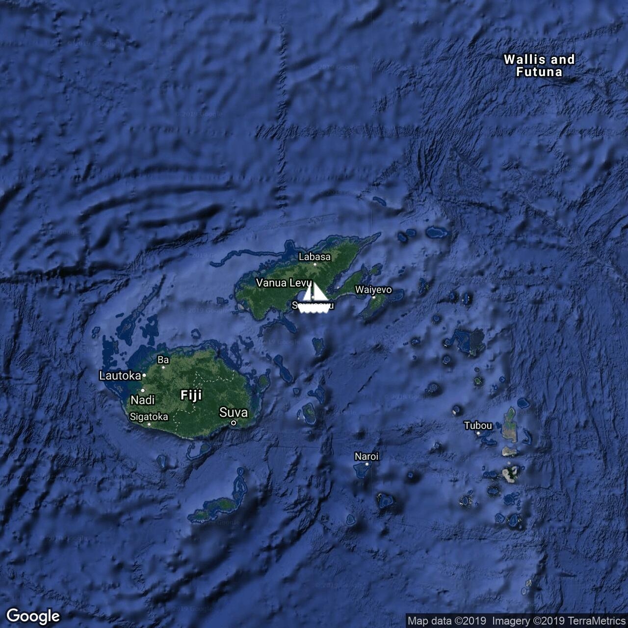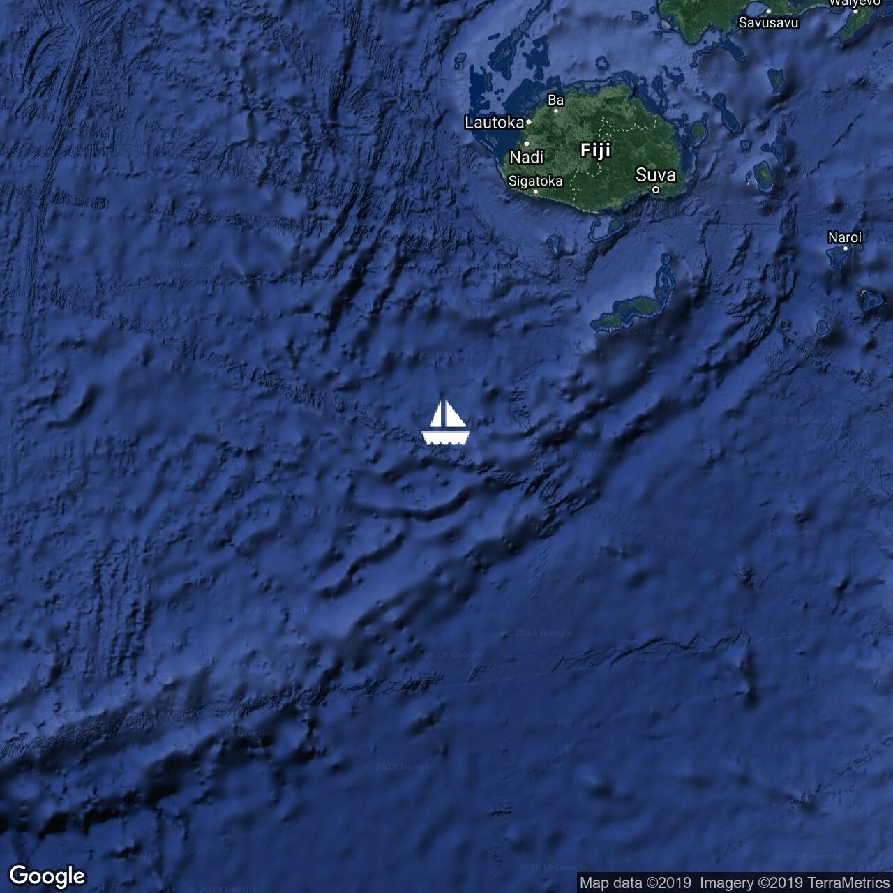Getting our sea legs after our first night at sea. Leaving Navula Pass we had plenty of wind 15-20kn and choppy 1m seas, but these calmed down to 12kn and <1m seas for a pleasant night. This morning we awoke to nearly-flat seas and no wind. There is plenty of wind in our future. Miles gone 146. Miles to Opua 912. A small private jet just circled us three times before flying away toward Fiji.