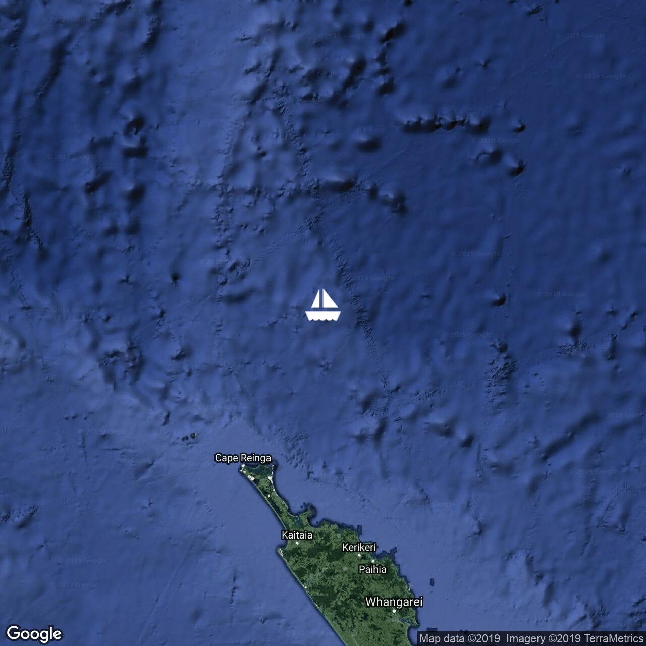 sailing in confused, rough seas. 127 miles to Opua