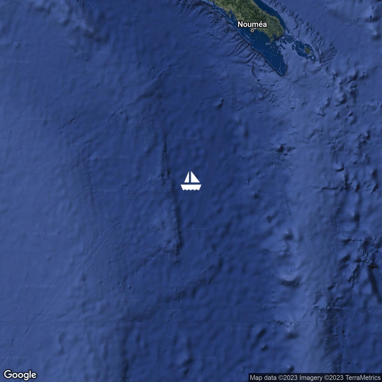 Nice day's sailing, sunny skies and now moonlit night. Still working on clearing the southern end of New Cal.